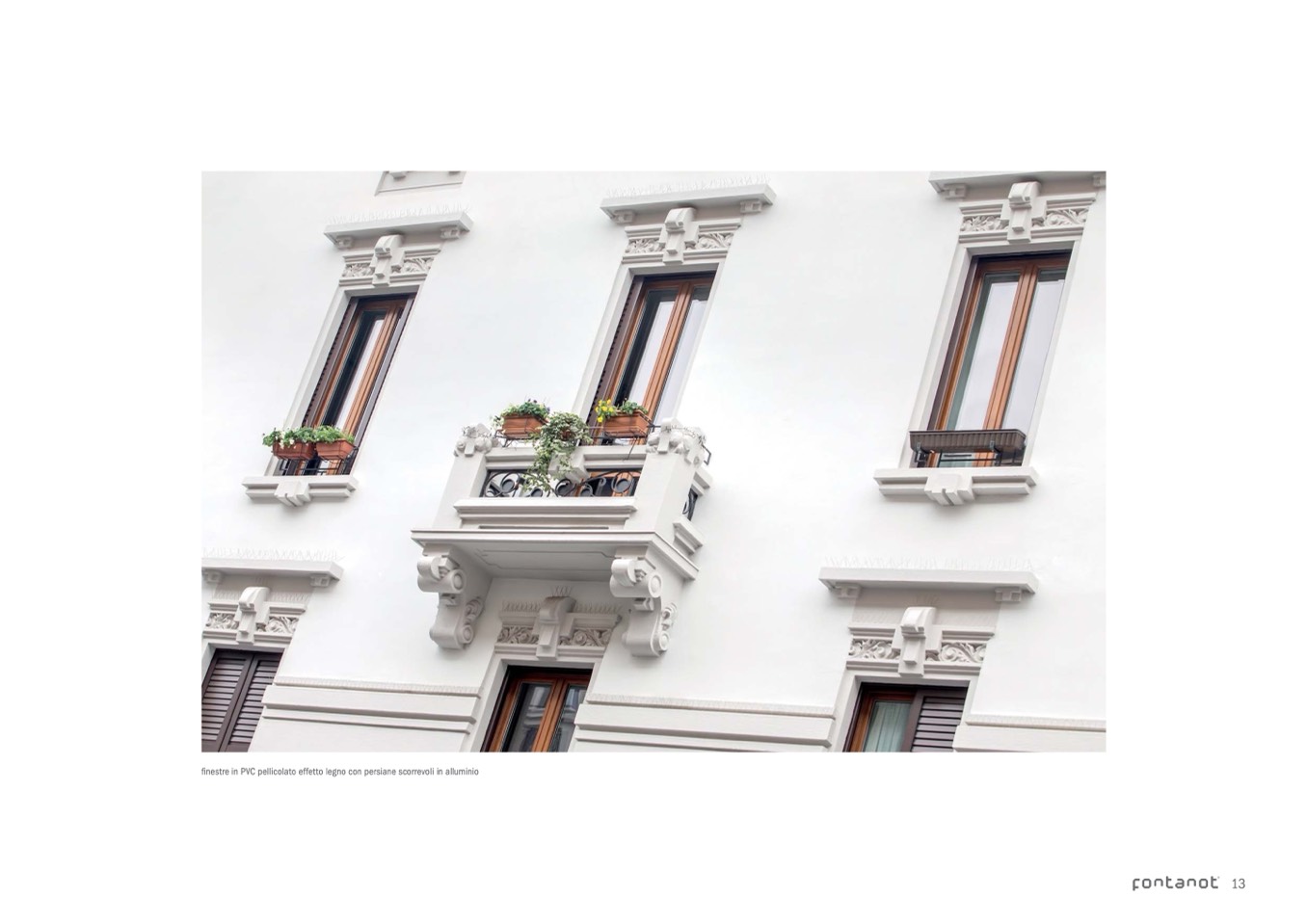 finestre in PVC pellicolato effetto legno con persiane scorrevoli in alluminio