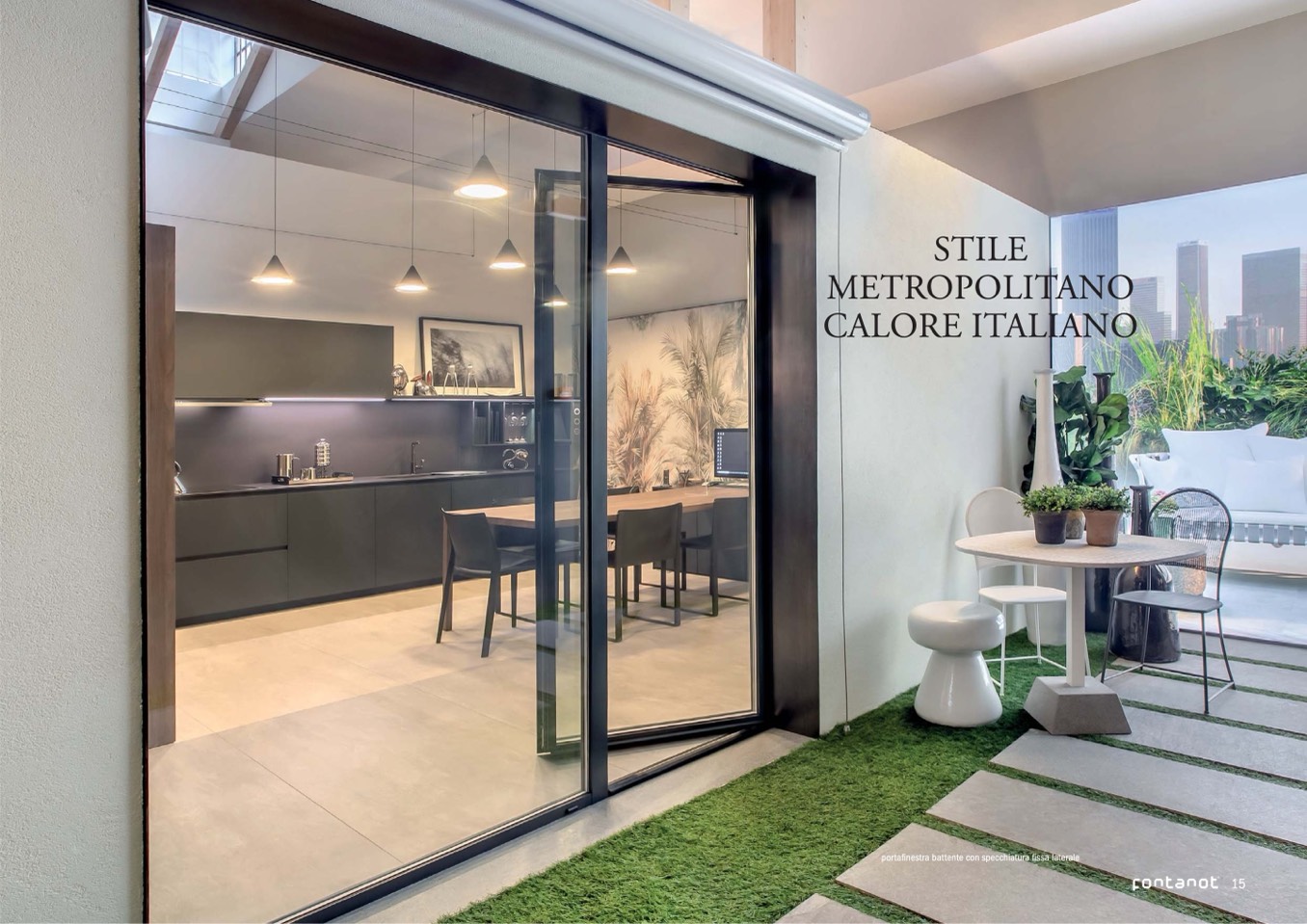 portafinestra battente con specchiatura fissa laterale