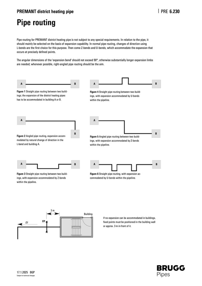 Pipe routing for PREMANT district heating pipe is not subject to any special requirements. In relation to the pipe, it