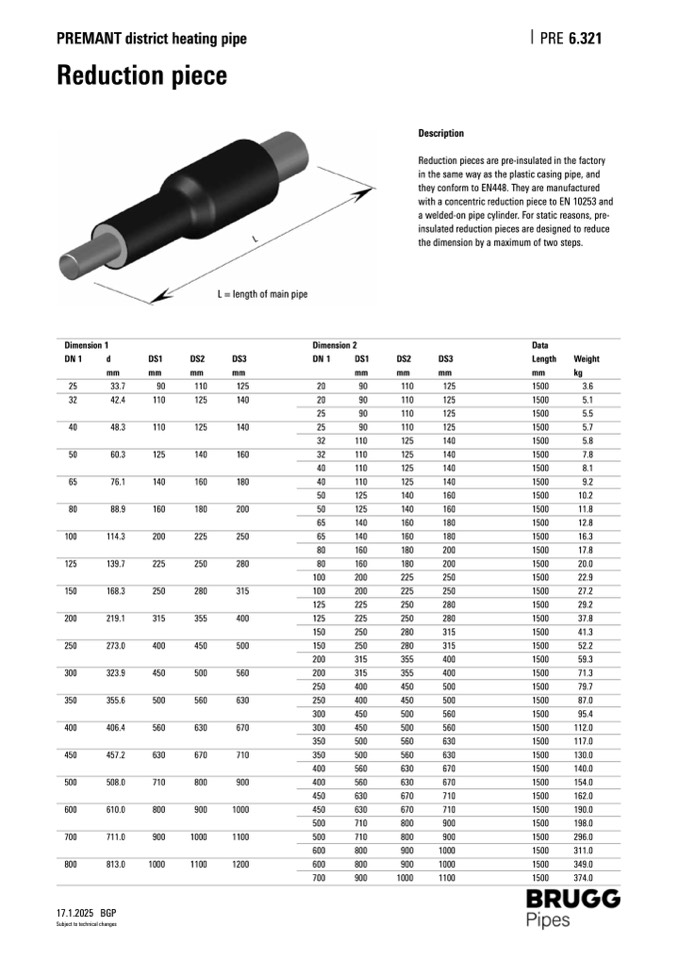 Reduction pieces are pre-insulated in the factory