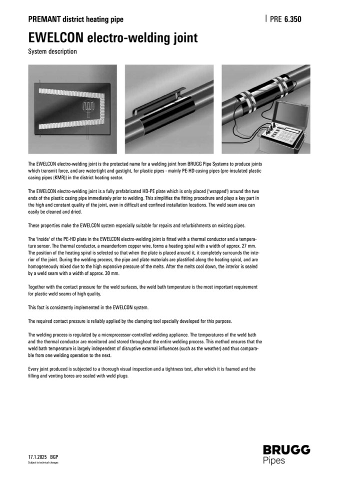 The EWELCON electro-welding joint is the protected name for a welding joint from BRUGG Pipe Systems to produce joints