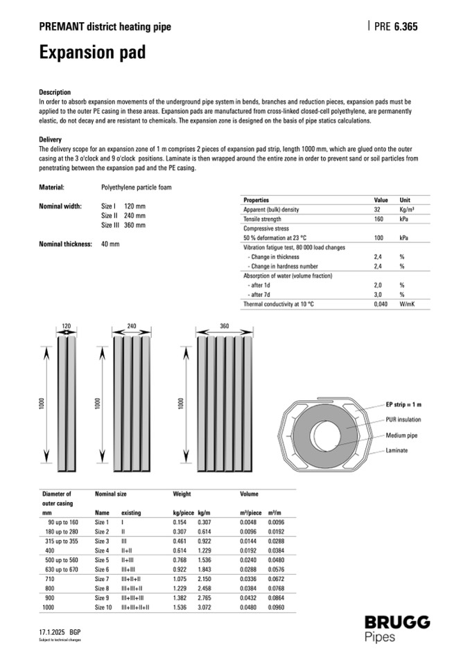 applied to the outer PE casing in these areas. Expansion pads are manufactured from cross-linked closed-cell polyethylene, are permanently