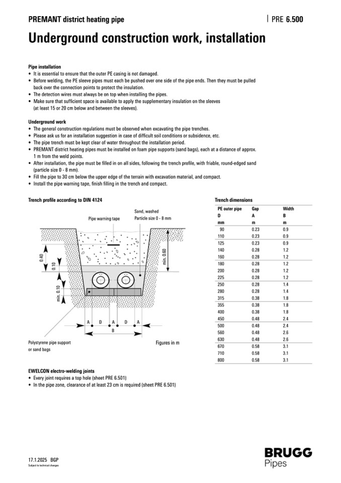 • The general construction regulations must be observed when excavating the pipe trenches.