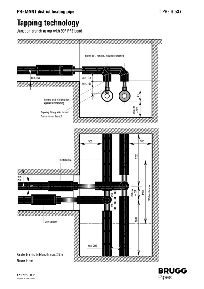 Parallel branch: limb length: max. 2.5 m