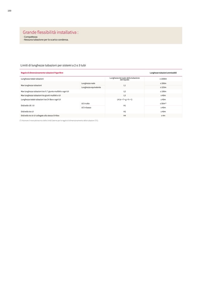 (*) Visionare il manuale tecnico delle Unità Esterne per le regole di dimensionamento delle tubazioni (TC).