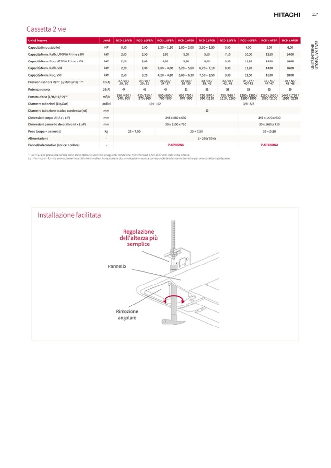 Le misure di pressione sonora sono state ottenute secondo le seguenti condizioni: microfono ad 1,5m al di sotto dell'unità interna.