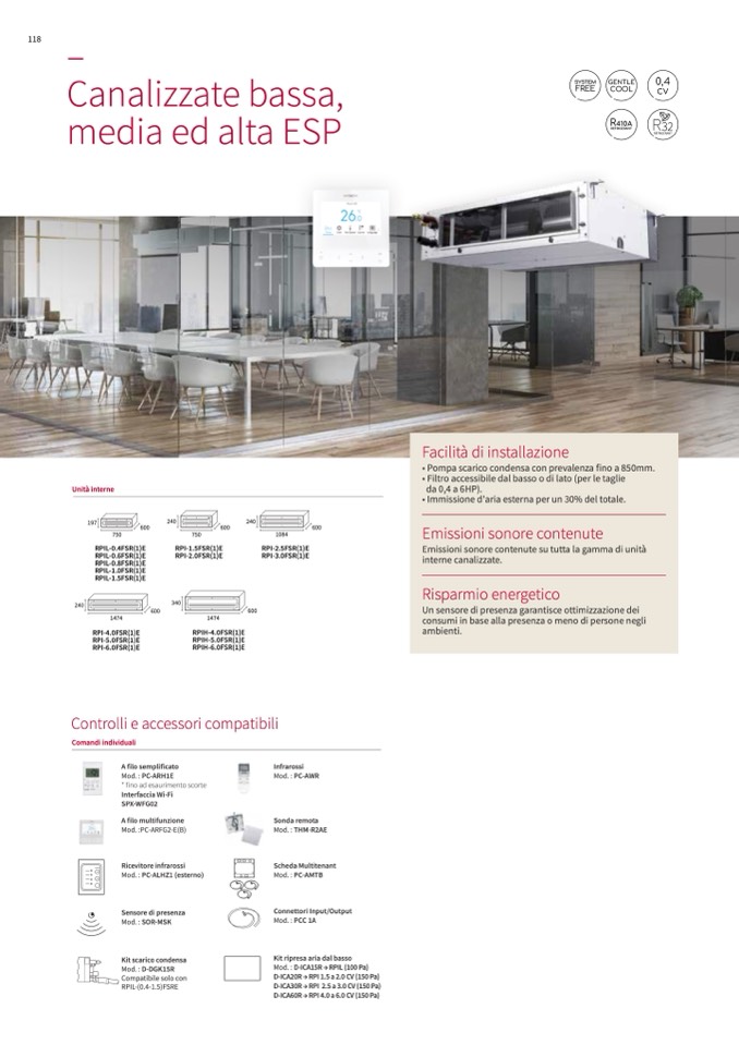 • Pompa scarico condensa con prevalenza fino a 850mm.