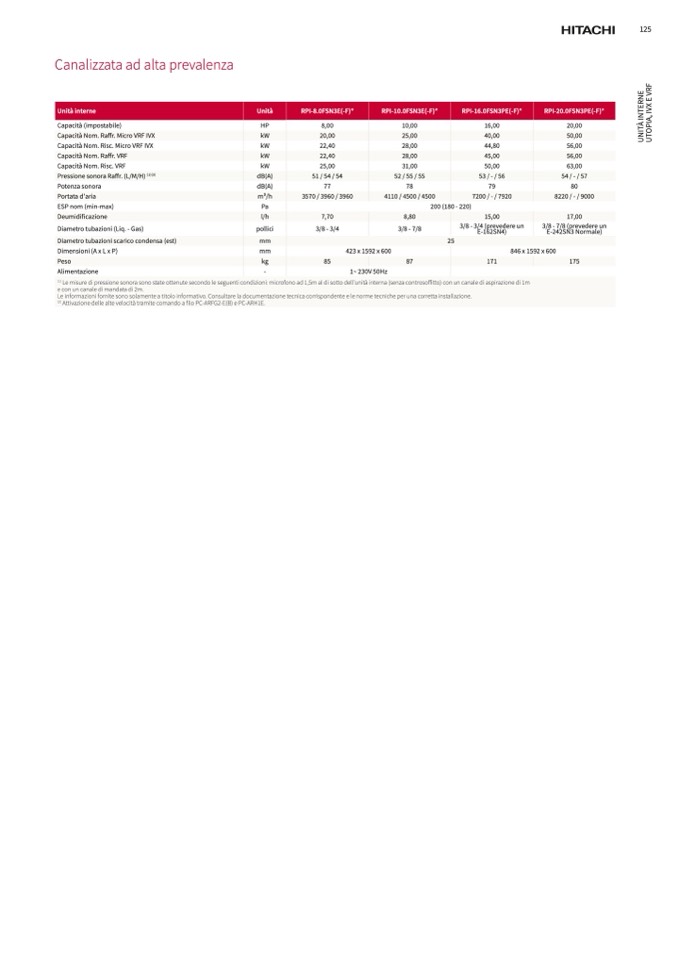 Le misure di pressione sonora sono state ottenute secondo le seguenti condizioni: microfono ad 1,5m al di sotto dell'unità interna (senza controsoffitto) con un canale di aspirazione di 1m