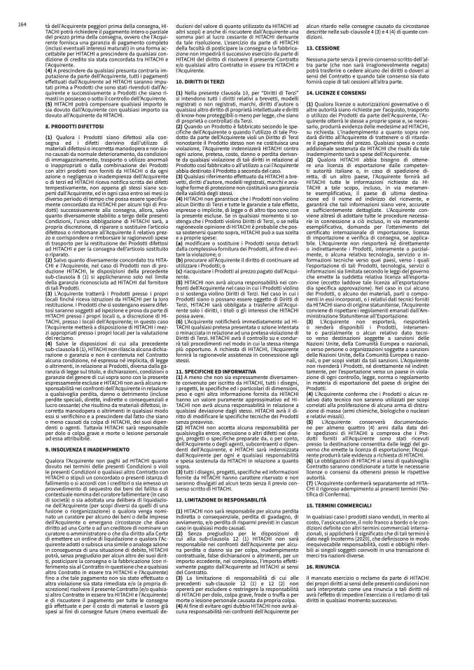 Condizioni, l’unica obbligazione di HITACHI sarà, a