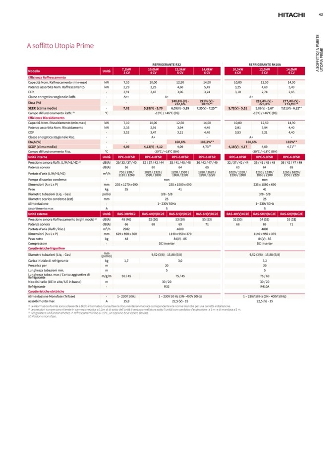 Le pressioni sonore sono rilevate in camera anecoica a 1,5m al di sotto dell'unità ( senza pannellatura sotto l'unità) con condotto d'aspirazione a 1 m e di mandata a 2 m.