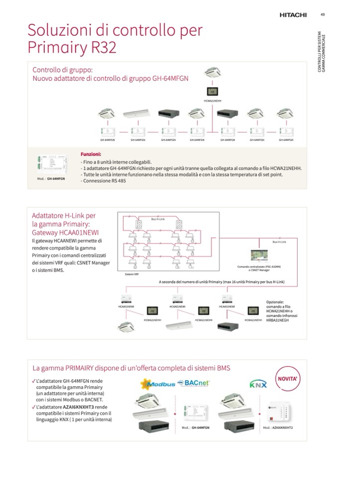 - 1 adattatore GH-64MFGN richiesto per ogni unità tranne quella collegata al comando a filo HCWA21NEHH.