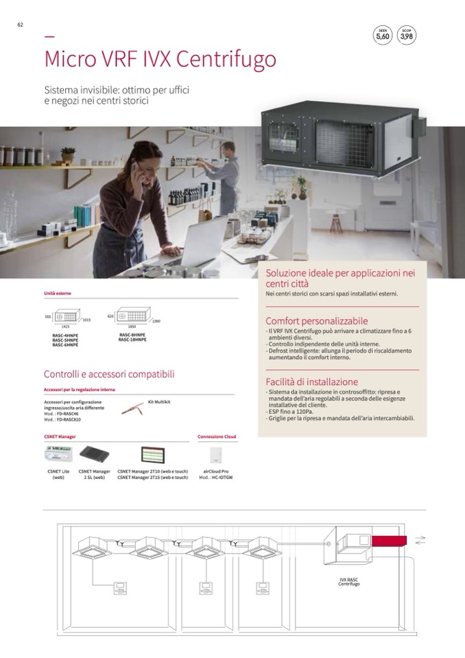 - Il VRF IVX Centrifugo può arrivare a climatizzare fino a 6