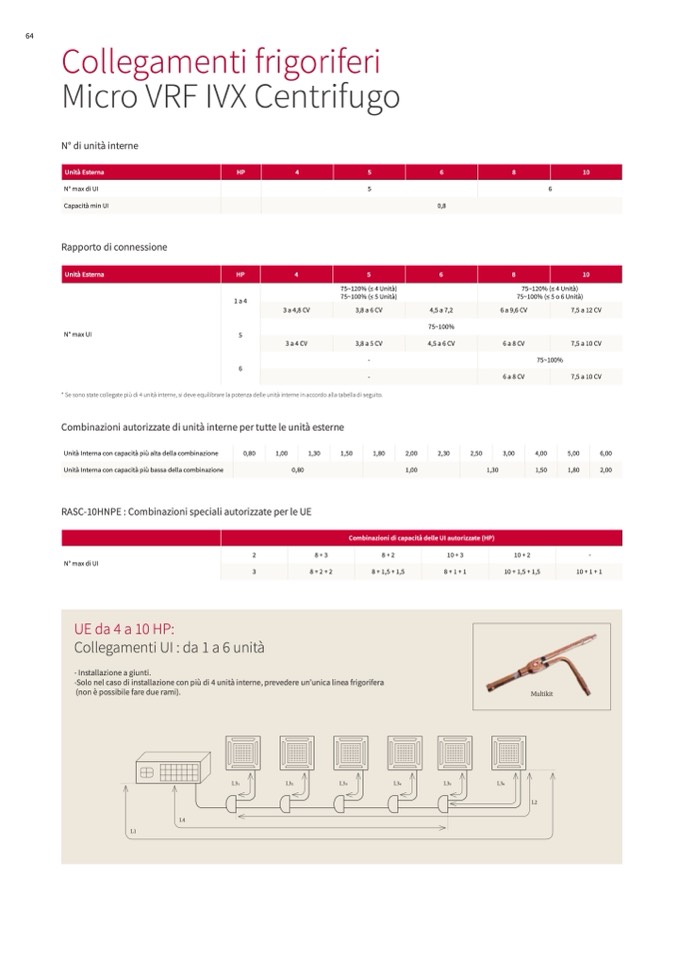 -Solo nel caso di installazione con più di 4 unità interne, prevedere un’unica linea frigorifera