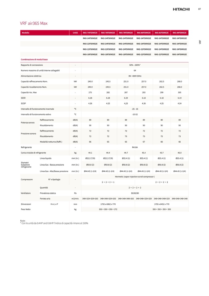 * Con le unità da 0.4HP and 0.6HP l’indice di capacità rimane al 150%