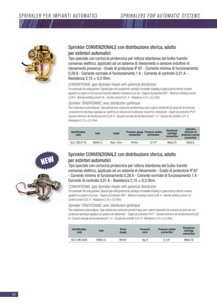 Pour extincteurs automatiques. Type spécial avec cartouche pyrotechnique pour rupture istantanée du ampoule de verre par