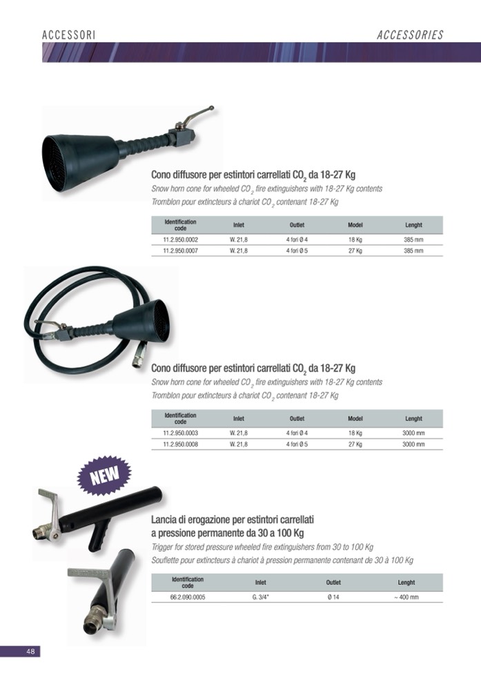 Souflette pour extincteurs à chariot à pression permanente contenant de 30 à 100 Kg