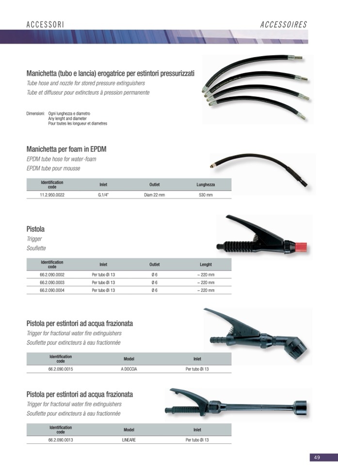 Manichetta (tubo e lancia) erogatrice per estintori pressurizzati