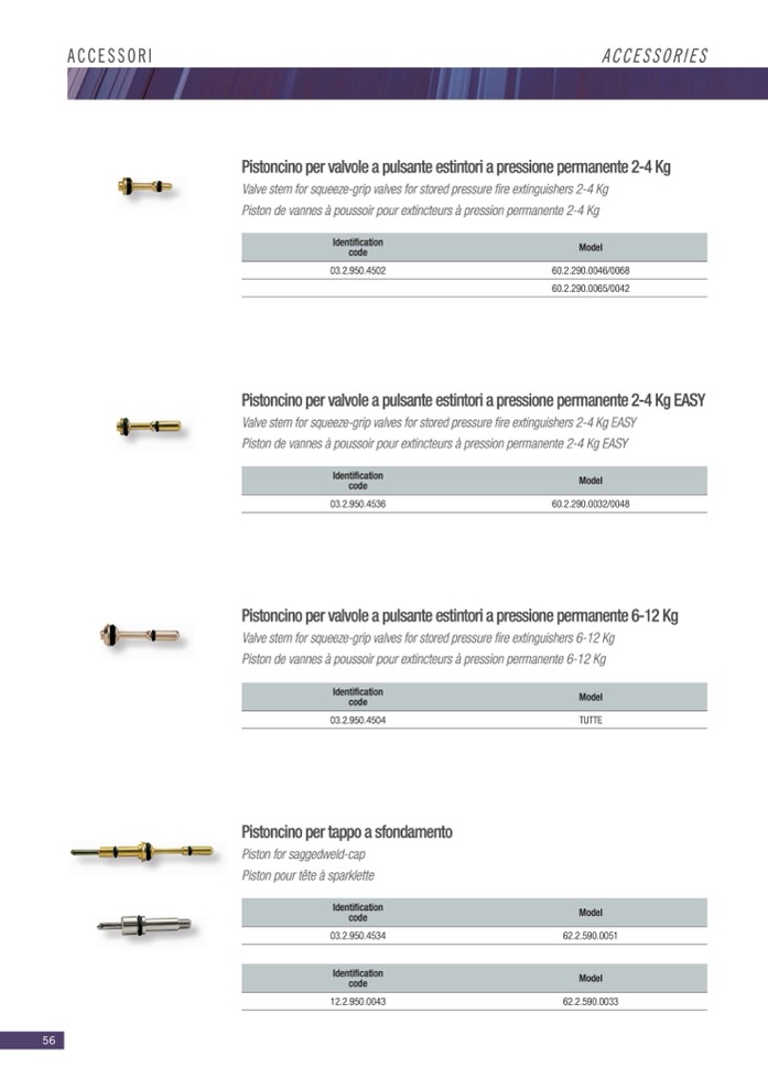 Piston de vannes à poussoir pour extincteurs à pression permanente 2-4 Kg EASY