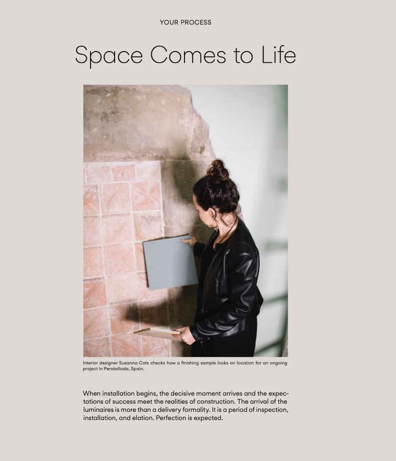 Interior designer Susanna Cots checks how a finishing sample looks on location for an ongoing