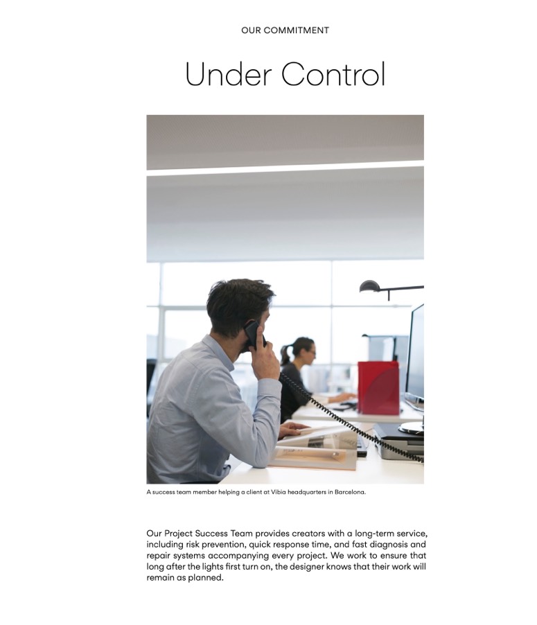 A success team member helping a client at Vibia headquarters in Barcelona.