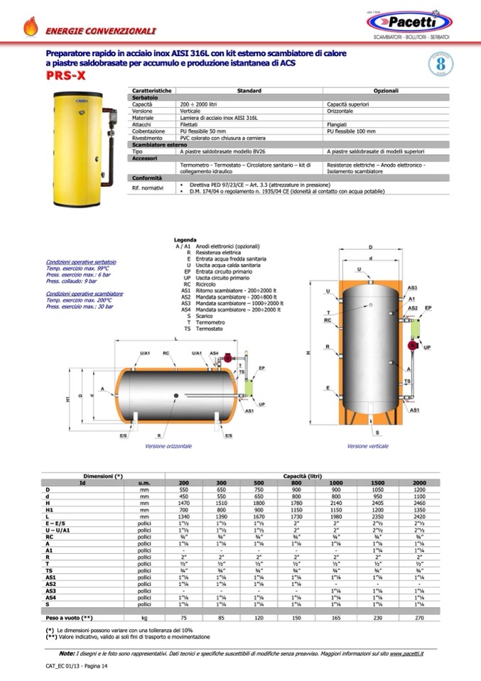 Note: I disegni e le foto sono rappresentativi. Dati tecnici e specifiche suscettibili di modifiche senza preavviso. Maggiori informazioni sul sito www.pacetti.it