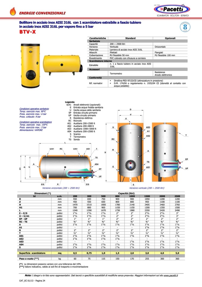 Note: I disegni e le foto sono rappresentativi. Dati tecnici e specifiche suscettibili di modifiche senza preavviso. Maggiori informazioni sul sito www.pacetti.it