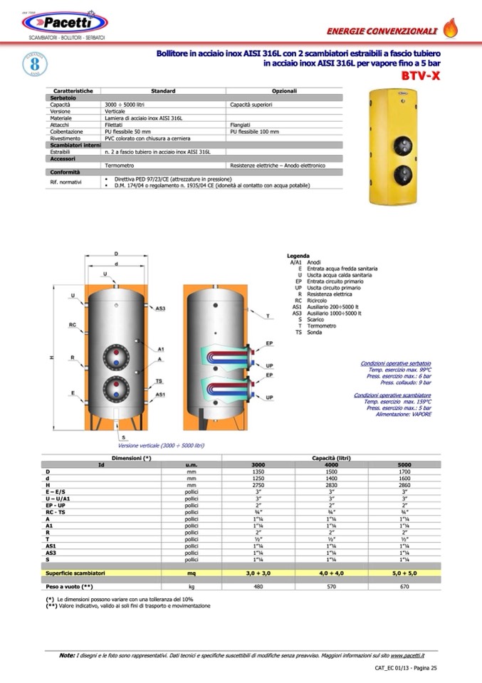 Note: I disegni e le foto sono rappresentativi. Dati tecnici e specifiche suscettibili di modifiche senza preavviso. Maggiori informazioni sul sito www.pacetti.it