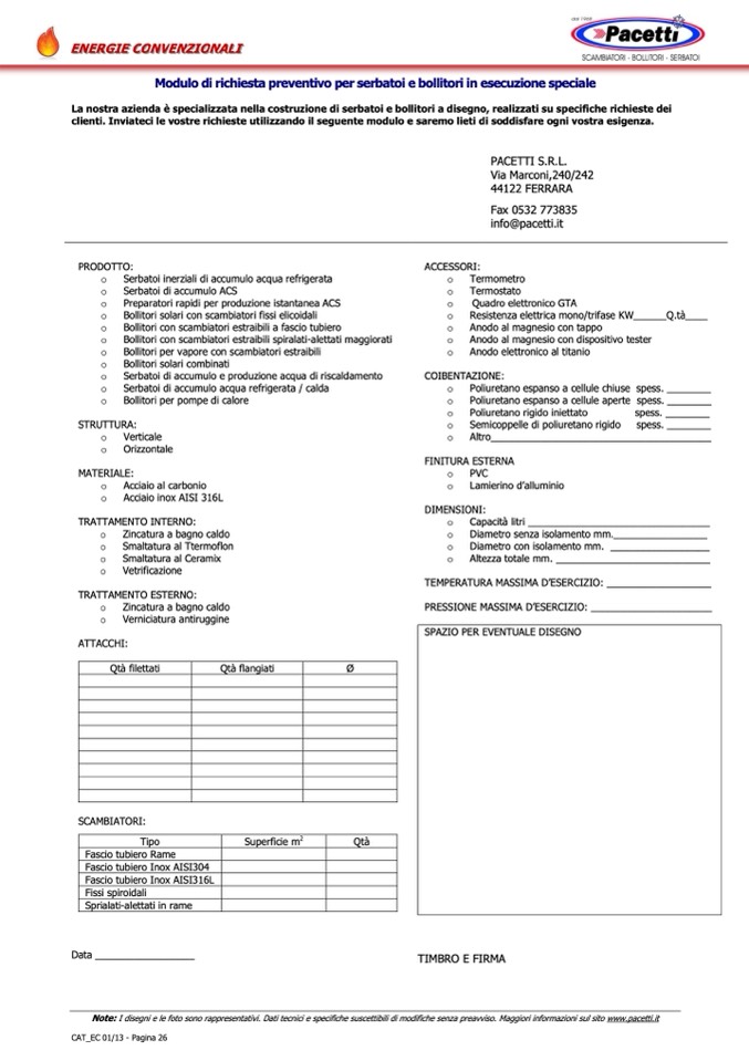 clienti. Inviateci le vostre richieste utilizzando il seguente modulo e saremo lieti di soddisfare ogni vostra esigenza.