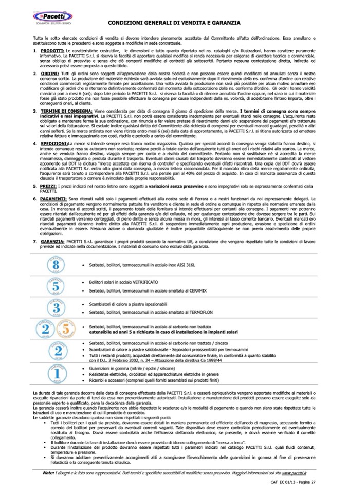 GARANZIA: PACETTI S.r.l. garantisce i propri prodotti secondo la normativa UE, a condizione che vengano rispettate tutte le condizioni di lavoro
