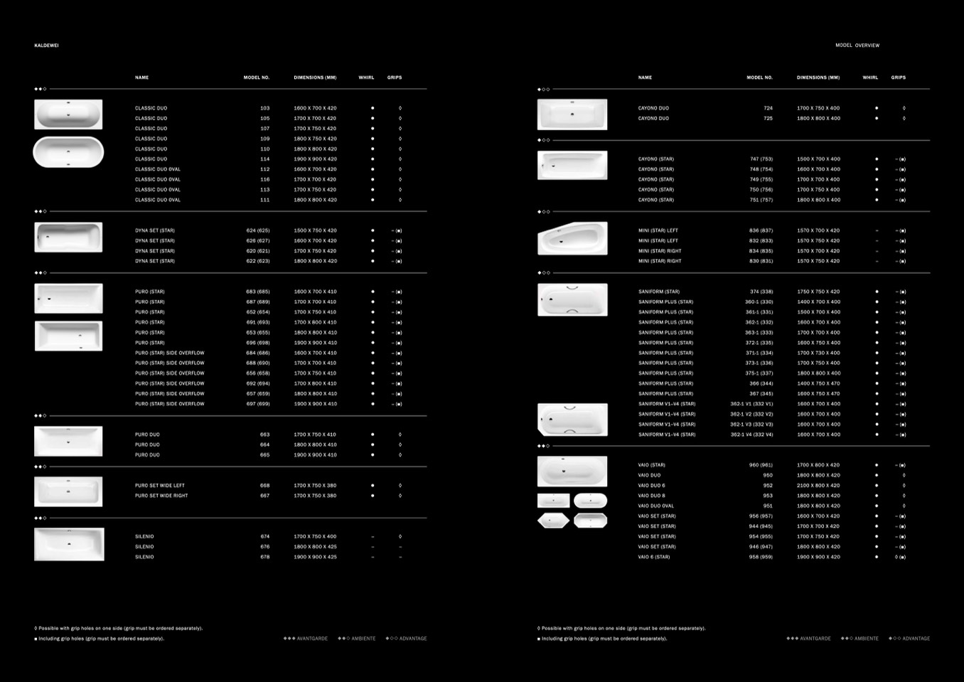 ◊ Possible with grip holes on one side (grip must be ordered separately).