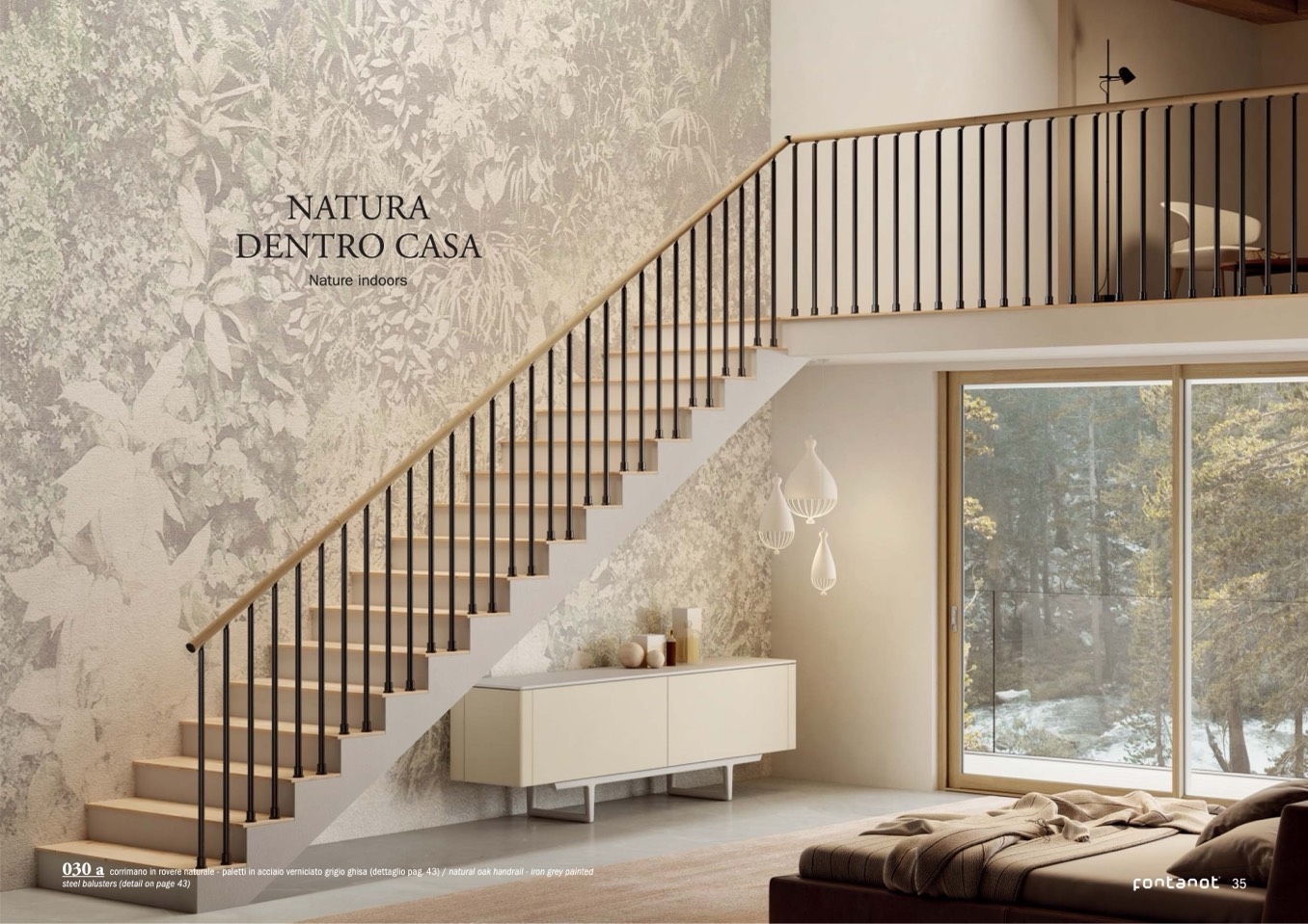 corrimano in rovere naturale - paletti in acciaio verniciato grigio ghisa (dettaglio pag. 43) / natural oak handrail - iron grey painted