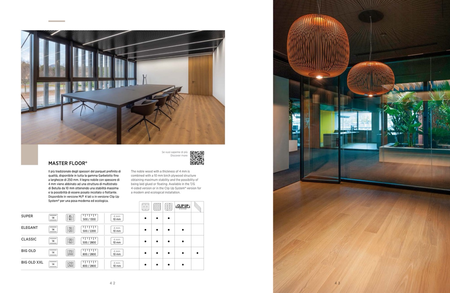 a larghezze di 250 mm. Il legno nobile con spessore di