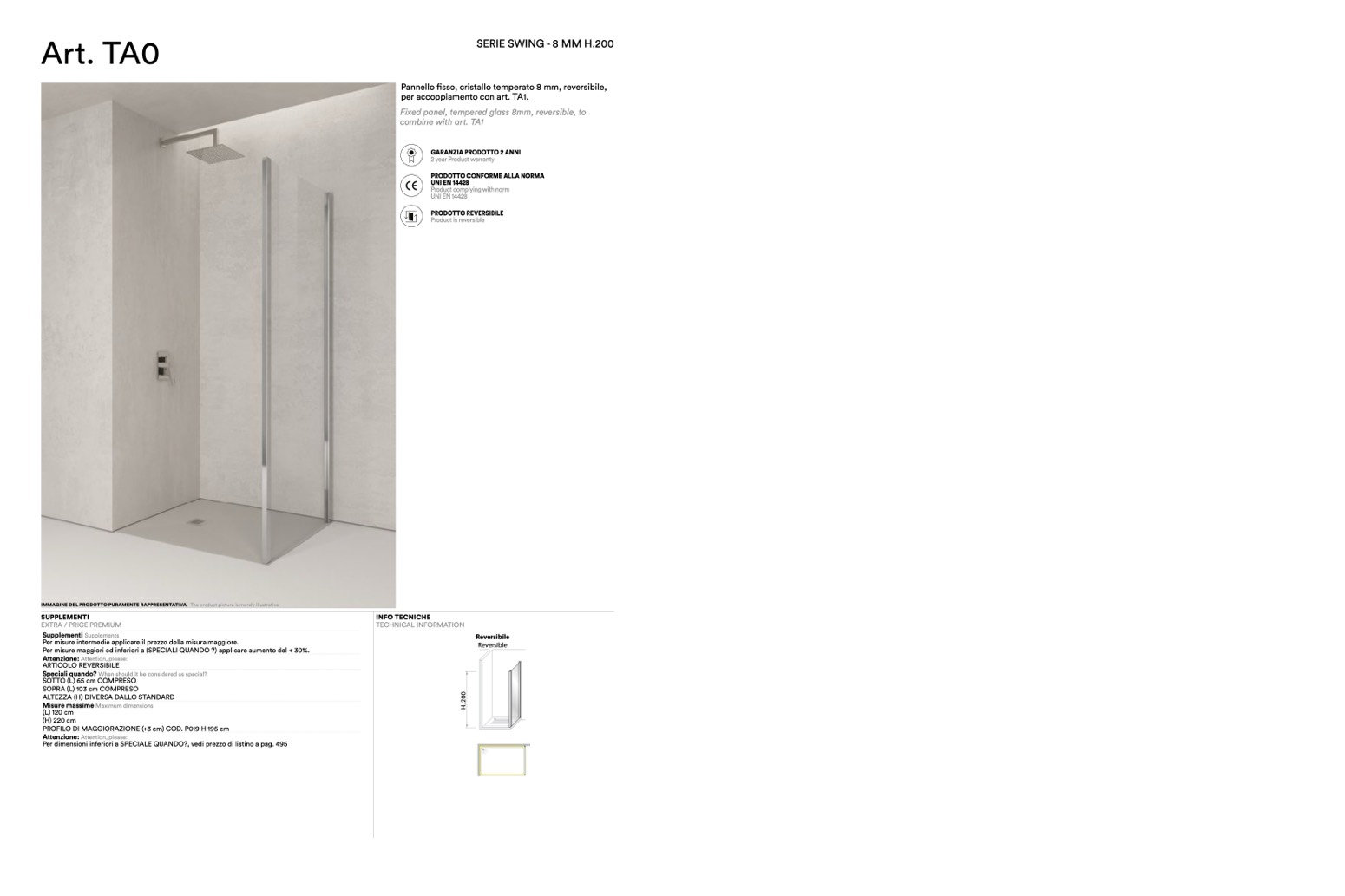 fisso, cristallo temperato 8 mm, reversibile,