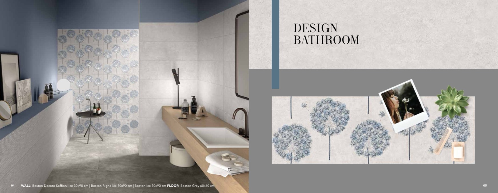 WALL: Boston Decoro Soffioni Ice 30x90 cm | Boston Righe Ice 30x90 cm | Boston Ice 30x90 cm FLOOR: Boston Grey 60x60 cm