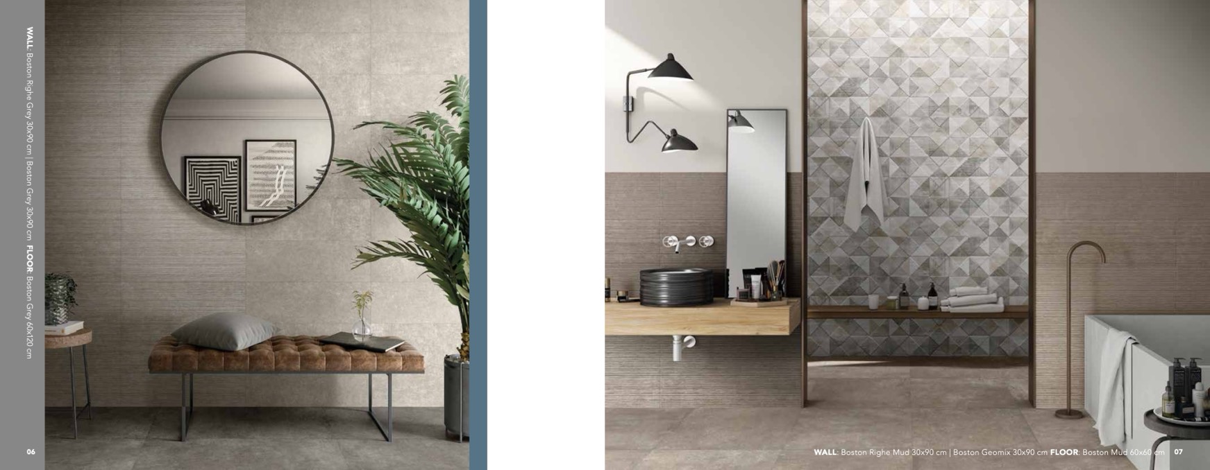 WALL: Boston Righe Mud 30x90 cm | Boston Geomix 30x90 cm FLOOR: Boston Mud 60x60 cm 07