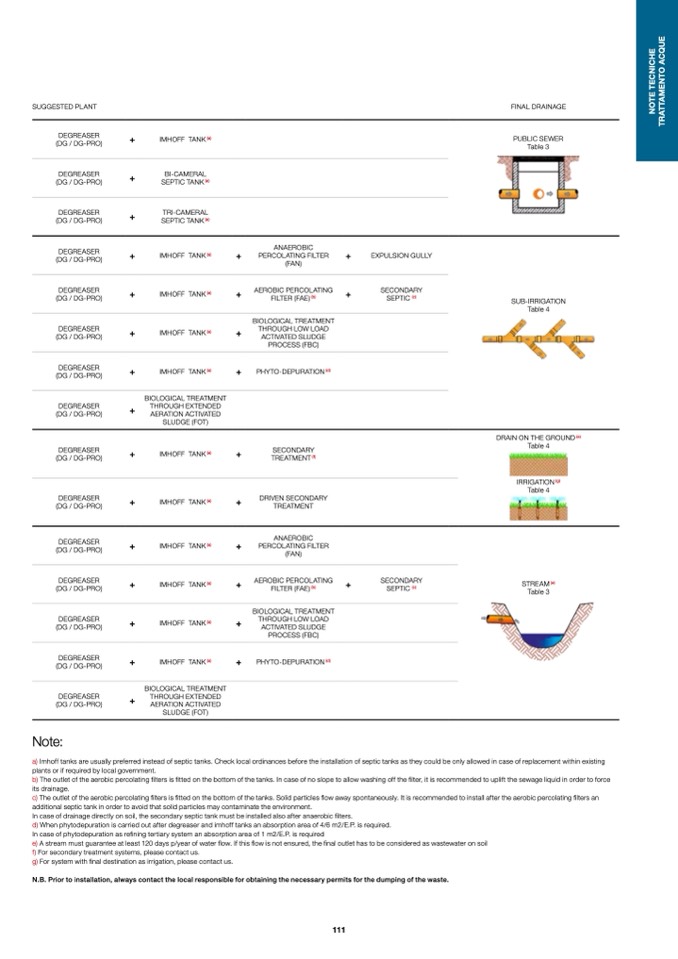 N.B. Prior to installation, always contact the local responsible for obtaining the necessary permits for the dumping of the waste.