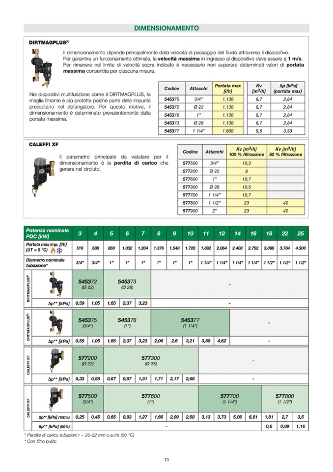 Il dimensionamento dipende principalmente dalla velocità di passaggio del fluido attraverso il dispositivo.