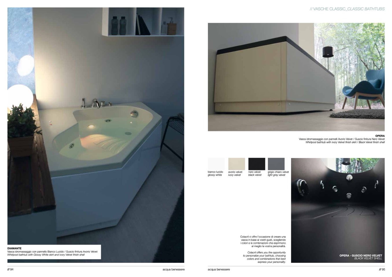 Vasca idromassaggio con pannelli Avorio Velvet / Guscio finitura Nero Velvet