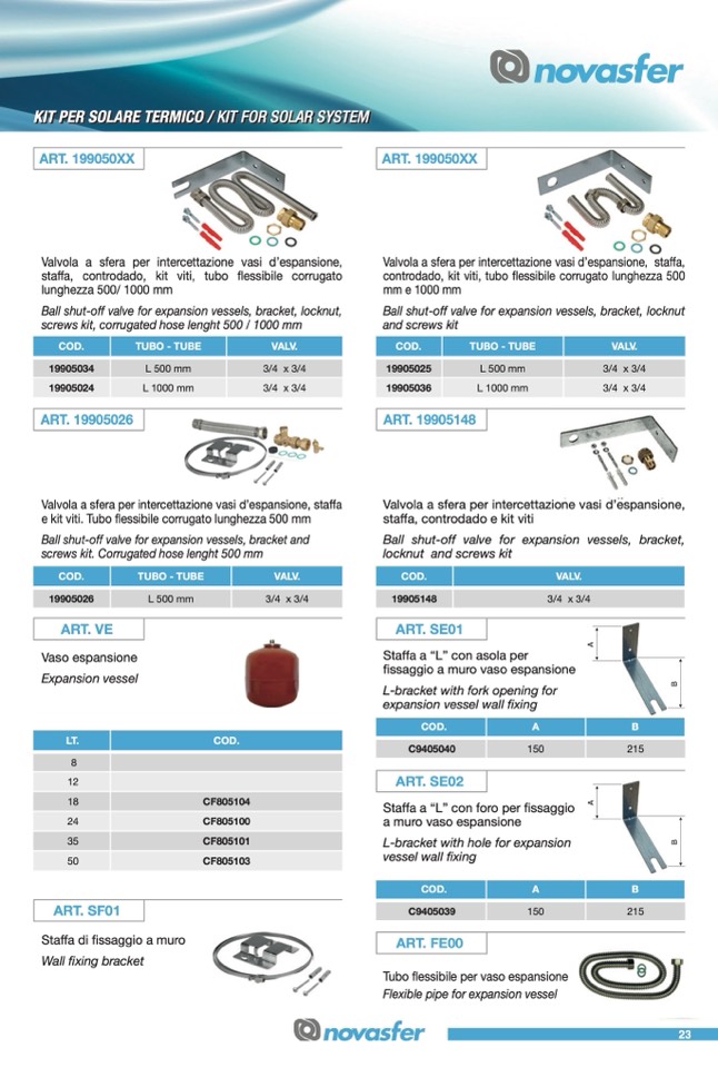 Valvola a sfera per intercettazione vasi d’espansione, staffa,