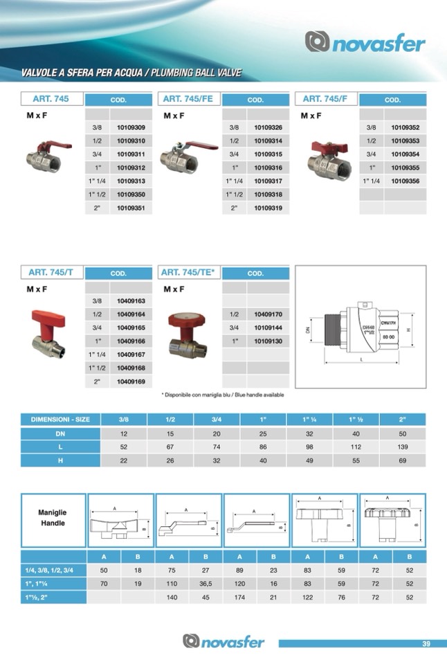 * Disponibile con maniglia blu / Blue handle available