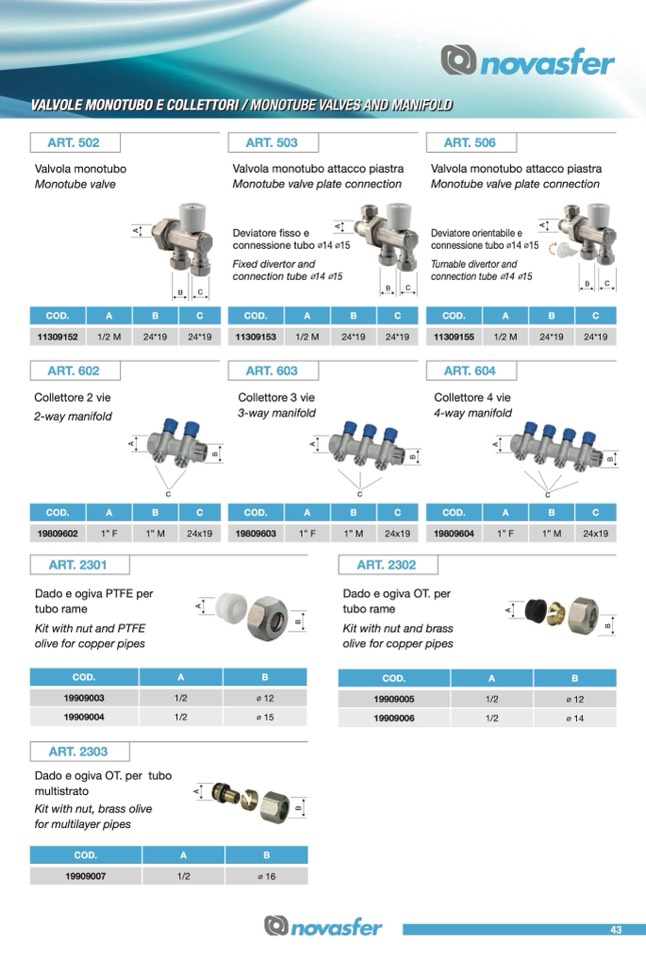 Valvola monotubo attacco piastra
