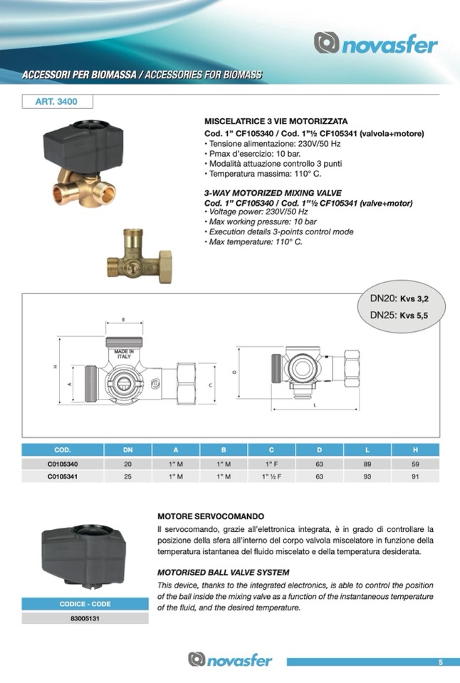 Cod. 1’’ CF105340 / Cod. 1’’1⁄2 CF105341 (valve+motor)
