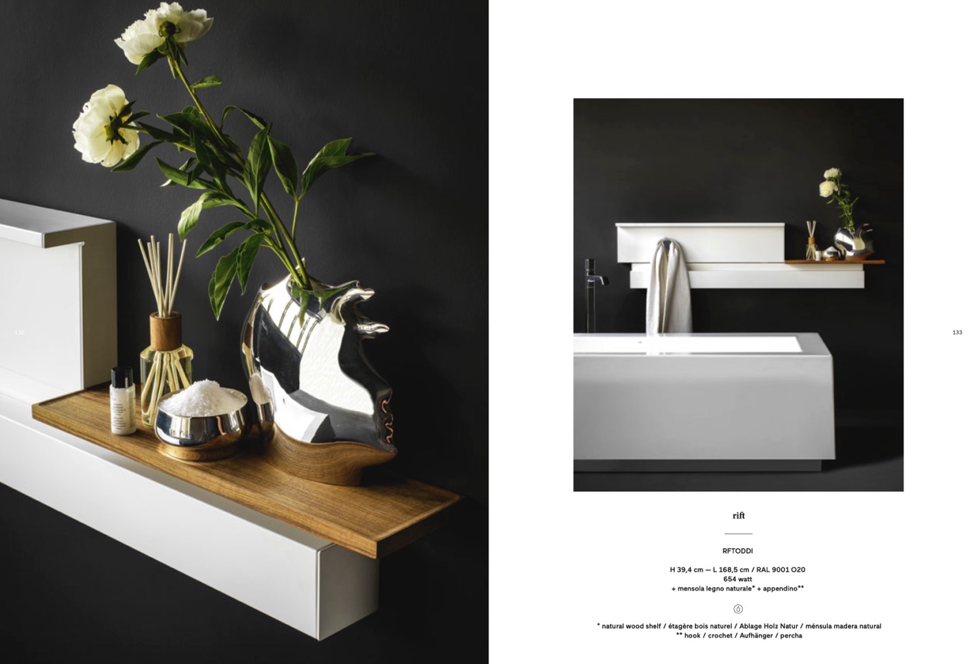 + mensola legno naturale* + appendino**
