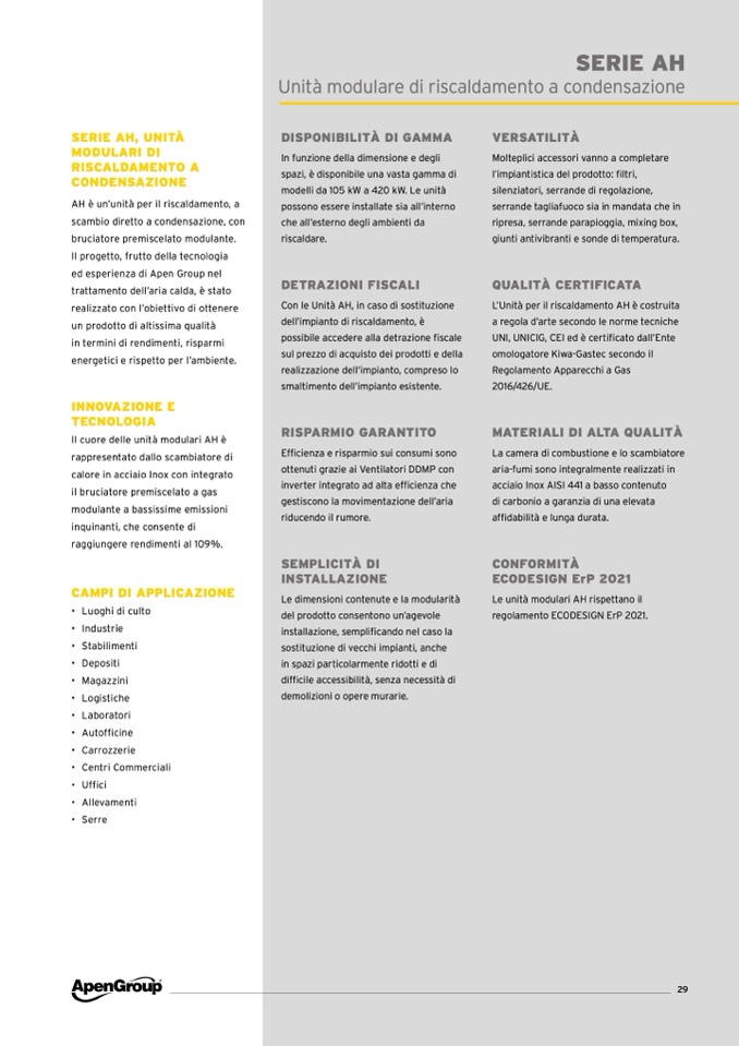 AH è un’unità per il riscaldamento, a