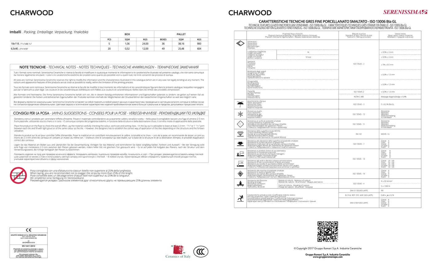 Все форматы являются номинальными. Serenissima Ceramiche оставляет за собой пзменять в любой момент данные и характеристики, приведеные в настоящем каталоге, которые в любом случае