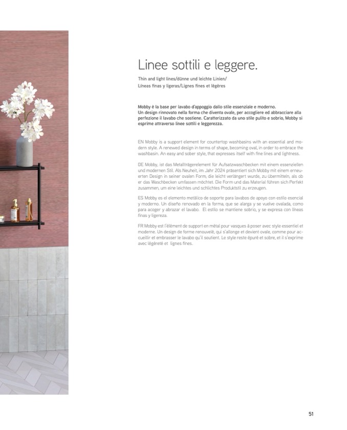washbasin. An easy and sober style, that expresses itself with fine lines and lightness