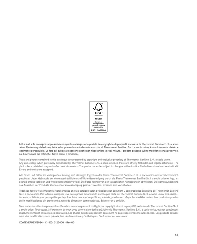 Tutti i testi e le immagini rappresentate in questo catalogo sono protetti da copyright e di proprietà esclusiva di Thermomat Saniline S.r.l. a socio
