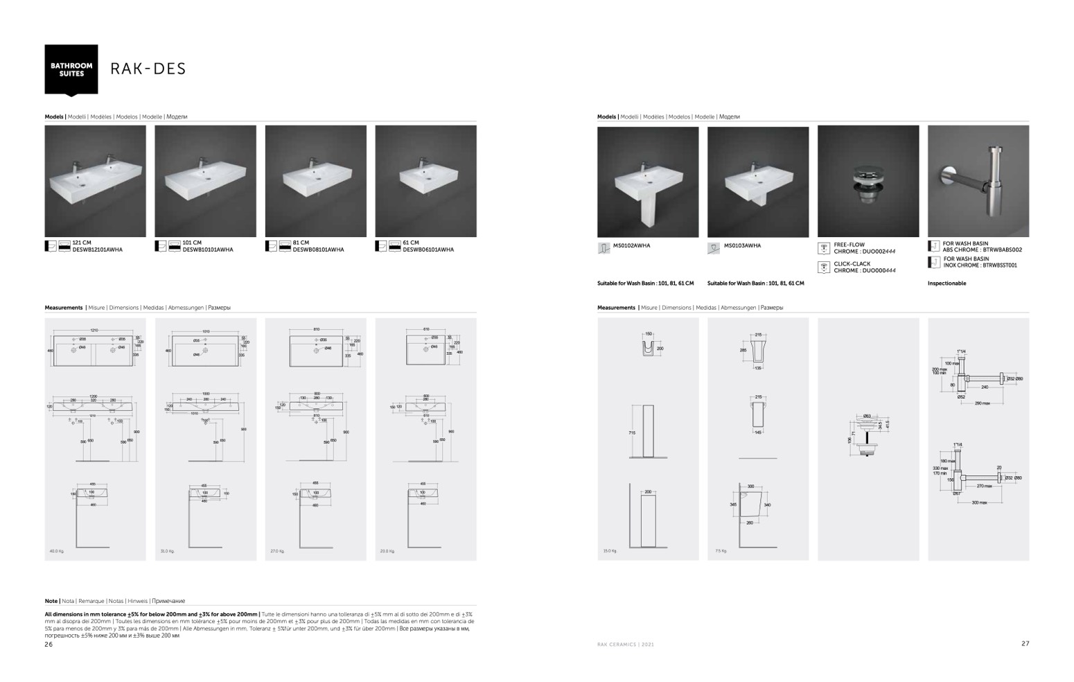 mm al disopra dei 200mm | Toutes les dimensions en mm tolérance ±5% pour moins de 200mm et ±3% pour plus de 200mm | Todas las medidas en mm con tolerancia de