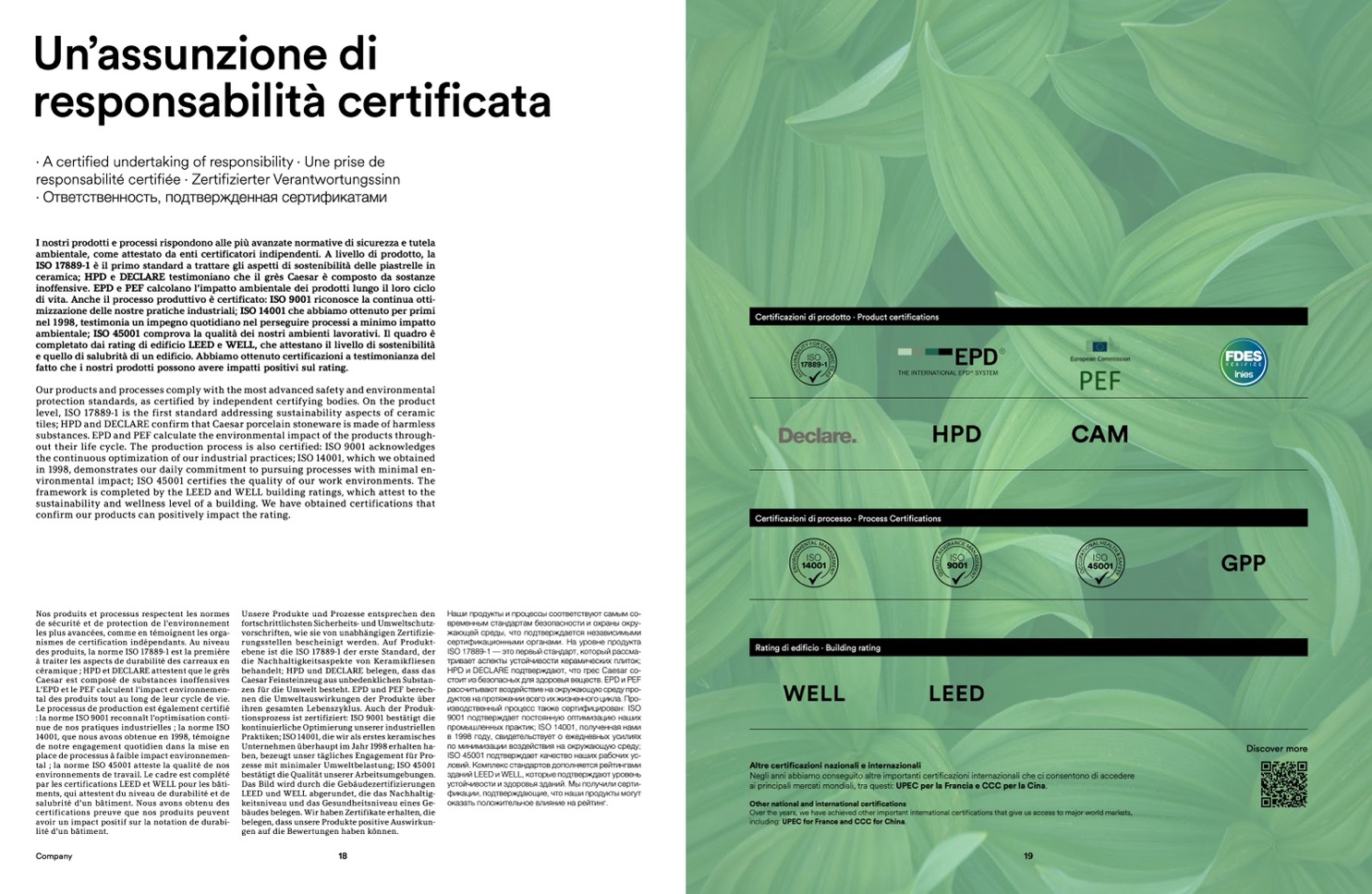 tiles; HPD and DECLARE confirm that Caesar porcelain stoneware is made of harmless