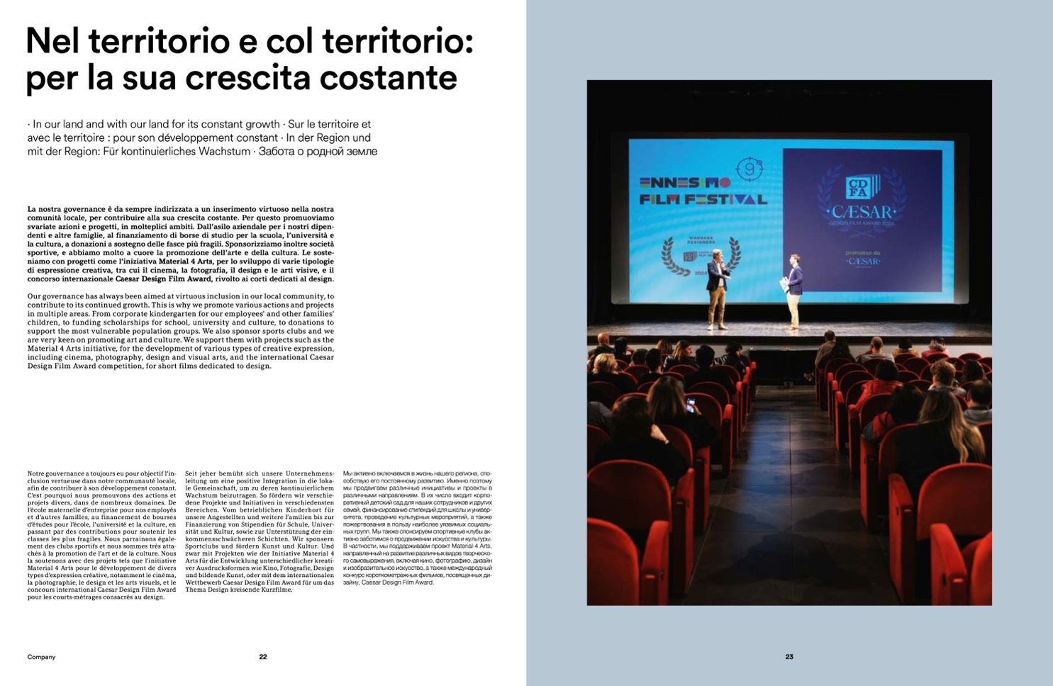 including cinema, photography, design and visual arts, and the international Caesar